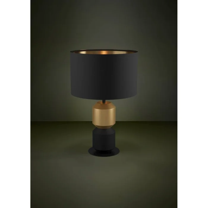 Bulb Holder Type: E27 Maximum Wattage: 1X40W Product Height: 49 cm Product Diameter: 32 cm Net Weight: 1.99 Kg Main Material: Steel Main Color: Black, Gold Glass/Hat Material: Textile Fabric Glass/Hat Color: Black, Brass IP Status: IP20 Switch Type: Cable Switched Product Voltage: 220-240V,50/60Hz