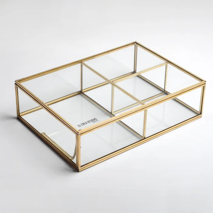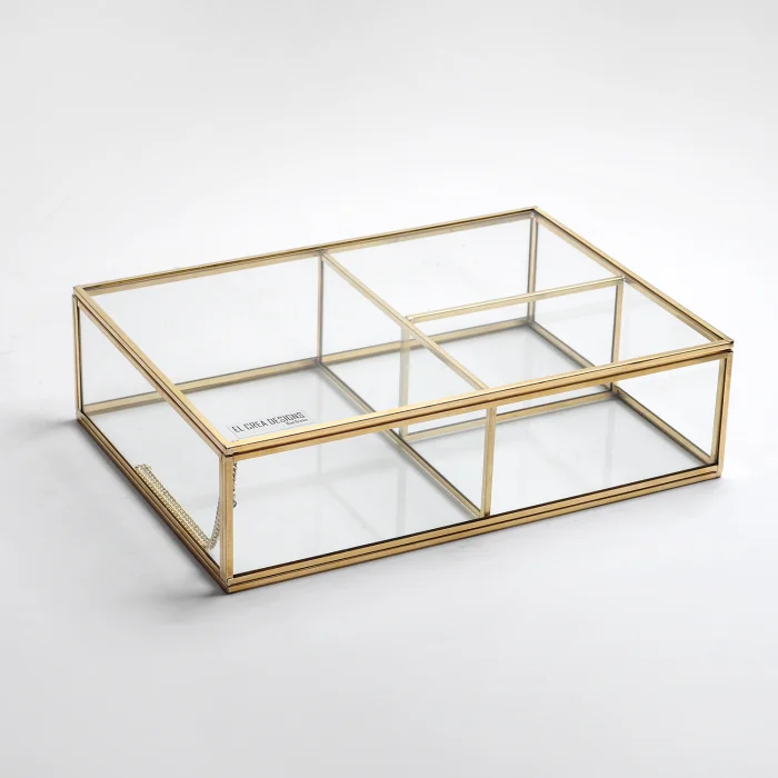 Product: 3 Compartment | Glass Organizer | Brass & Gold, Silver