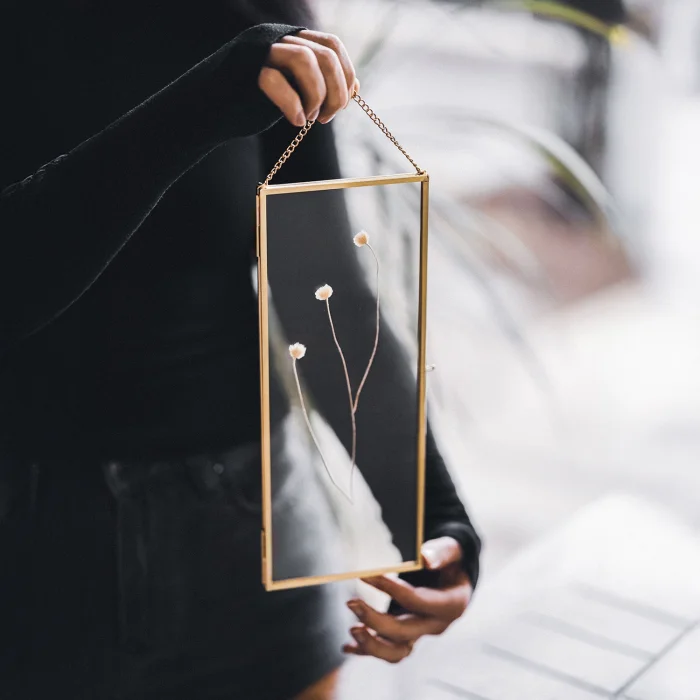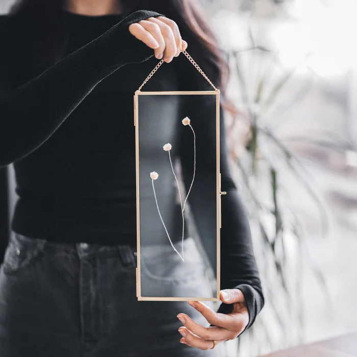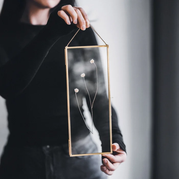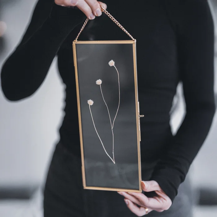 Product: Picture & Photo Frames | Pressed Dried Flowers | With Chain | Glass | Brass & Gold