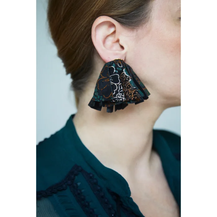 Designed and hand made in London, these lightweight earrings are made with the softest leather remnants. The floral print pattern is limited edition. Nickel free 18 ct gold plated earring stud.