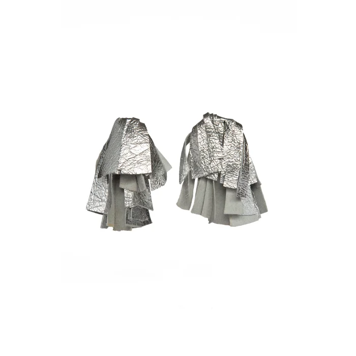 Designed and hand made in London, these lightweight earrings are made with the softest metallic in a matt silver leather. Nickel free silver plated earring stud.