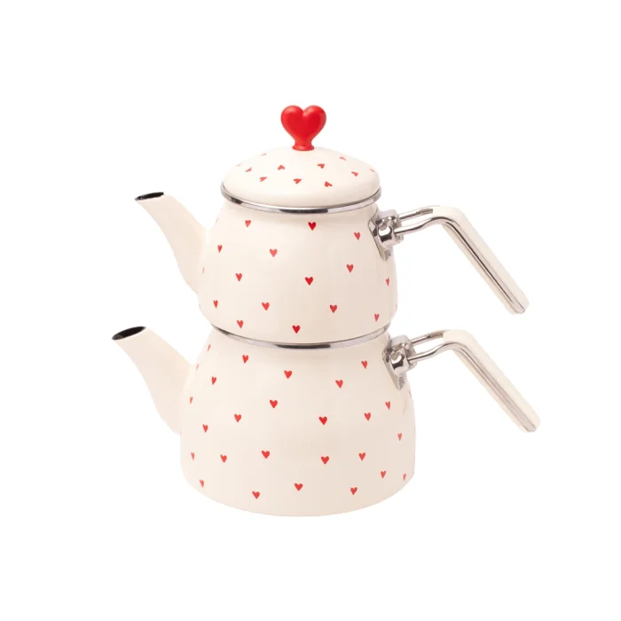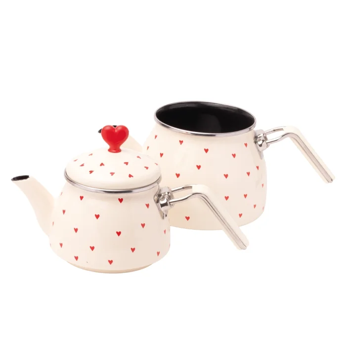 Cupid Teapot; It has been carefully prepared for you with its heart-shaped special zamak top, easy-to-grip handle, antibacterial material and quality design. Product Features: Upper Teapot Volume: 1 Lt Lower Drinker Volume: 2 Lt Special Features: All EMAYlab patterns are produced with special silk printing technique; Their patterns never flow and fade. Enamel is a healthy and antibacterial substance; It is easily cleaned because its surface is smooth. Our products are handcrafted; Each product is unique due to the differences that arise from the nature of hand production on its surface.