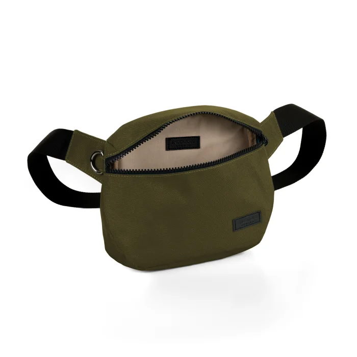 Dimensions: (H) 19 cm x (W) 23 cm x (D) 5 cm; 2; 2 liters Material: polyester fabric A main eye and hidden pocket in the back Ykk bone zipper Matara or key carrier apparatus