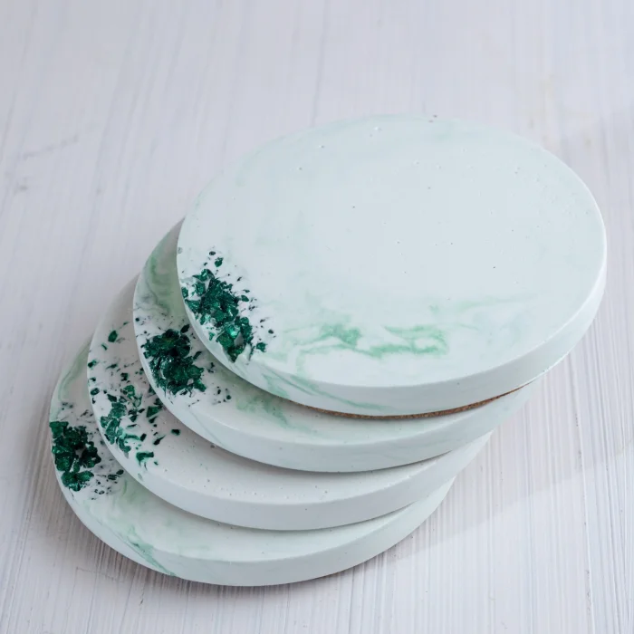 Made of handmade stone powder, the set of 4 coasters, which stands out with its crystal glass details, is offered with stylish packaging.