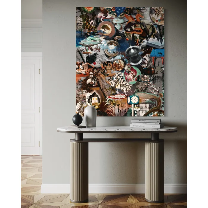 Art, Science and Human Evolution "Bus Stop Earth" offers a powerful narrative by EUDOIMONIART that questions humanity's place and evolution in the depths of the universe. Although art and science seem to be two separate concepts at first glance, they have been influenced by each other throughout history and have discovered the intersection points of creation and knowledge. In this work, science's search for precise knowledge and art's world of possibilities come together in the infinite possibilities of the universe. With the new century, the technologies of producing, processing and using information have changed, and the design and creation process has been at the center of this change. "Bus Stop Earth" takes a fresh look at this creative process, with a balance of science and art that dictate each other. In the work, the mathematical balances of nature and artistic aesthetics such as the golden ratio are depicted in perfect harmony. On the basis of the work, it is emphasized that a person waiting at a point in the universe is a passenger looking for his place in the infinite possibilities of the quantum universe and the mathematical order of nature. One of the most striking elements of the work is the cubism-like complexity in the painting. In each corner of the painting, a visual language is used that takes the viewer to different dimensions. This visuality brings together both the abstract and real worlds. Animal symbolism reflects the evolution and relationship of man with nature throughout the work. While each animal figure tells a story about the human evolutionary process, the overall structure of the painting represents a journey that questions humanity's complex connection with nature. This narrative is based on exploring the deep relationships of the universe and consciousness, just as Picasso and Einstein thought about time and space. "Bus Stop Earth" captures a moment in which man searches for his place in the infinite potentials of the universe. At the same time, it shows that art and science are closely interconnected disciplines that seek to understand the existence of man in the universe. In this work, nature's search for balance and the complexity of human consciousness are presented together. Now, by sharing the work "Bus Stop Earth" with you, we invite you to discover the human journey in the universe, its evolution and its relationship with nature. This work by EUDOIMONIART combines art and science, offering viewers a profound intellectual experience. * The Intersection of Art, Science, and Human Evolution "Bus Stop Earth" presents a powerful narrative from EUDOIMONIART, exploring humanity's place and evolution within the depths of the universe. Though art and science may seem like two distinct concepts, they have influenced each other throughout history, intersecting at the crossroads of creativity and knowledge. This piece unites the scientific pursuit of certainty with the artistic world of possibilities, all set within the infinite potential of the universe. With the new century, the ways we produce, process, and use knowledge have transformed, placing design and the creative process at the forefront. "Bus Stop Earth" offers a fresh perspective on this process, highlighting the delicate balance between science and art. The golden ratio—an expression of nature's mathematical harmony and artistic aesthetics—resonates throughout the piece, symbolizing the equilibrium of the cosmos. At its core, the artwork captures humanity at a pause in its journey, as it navigates the endless possibilities of the quantum universe while seeking its place within nature's grand design. One of the most striking aspects of the piece is its cubism-like complexity. Each corner of the painting draws the viewer into different dimensions, blending abstract and real worlds. The animal symbolism woven throughout the piece reflects humanity's connection with nature and its evolutionary journey. Each animal figure tells a story of this process, while the overall composition represents a voyage that questions the intricate relationship between humanity and the natural world. This narrative echoes the way Picasso and Einstein pondered space and time, exploring the profound relationships within the universe and consciousness. "Bus Stop Earth" captures a moment of reflection, where humanity seeks its place within the infinite potential of the cosmos. At the same time, the artwork reveals how art and science are deeply connected disciplines that strive to understand human existence in the universe. In this piece, the balance of nature and the complexity of human consciousness come together. Now, we present "Bus Stop Earth" to you, inviting you to explore humanity's journey, its evolution, and its relationship with nature. EUDOIMONIART's work merges art and science, offering viewers a deeply intellectual experience.