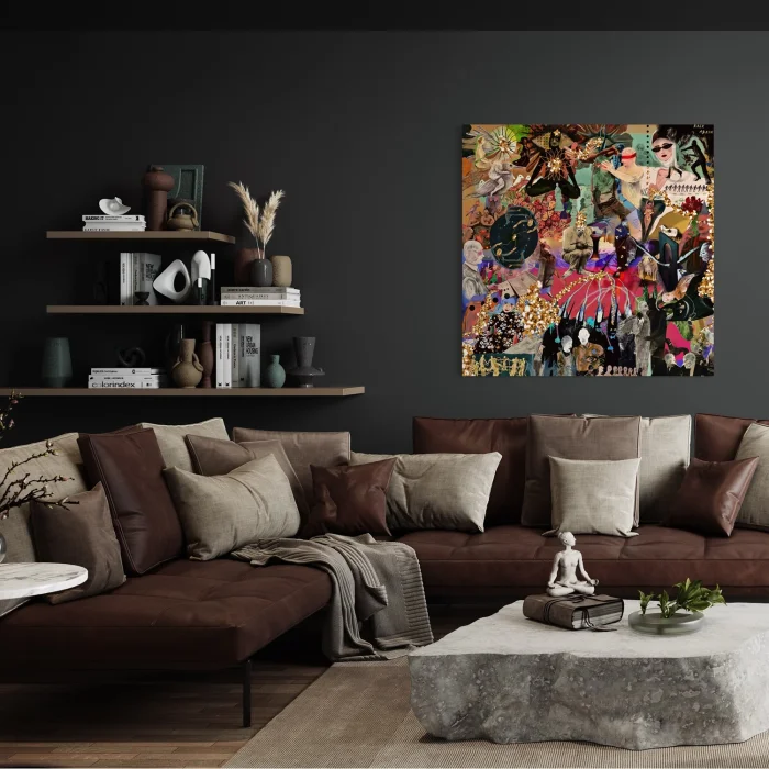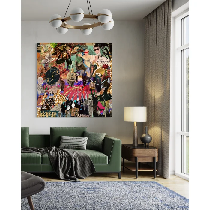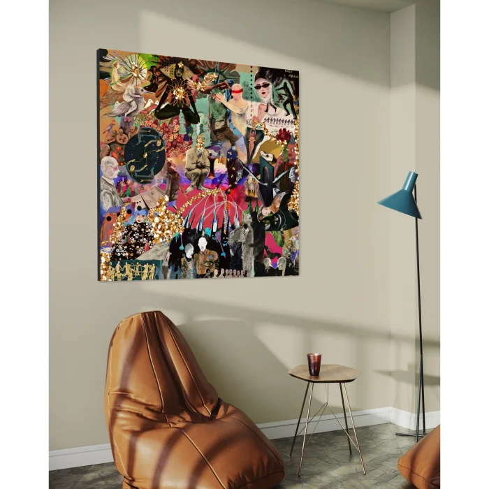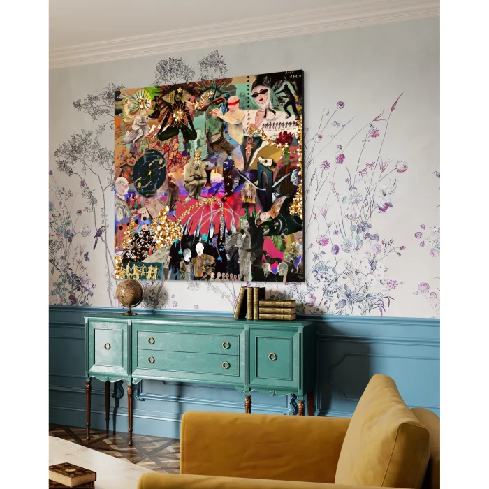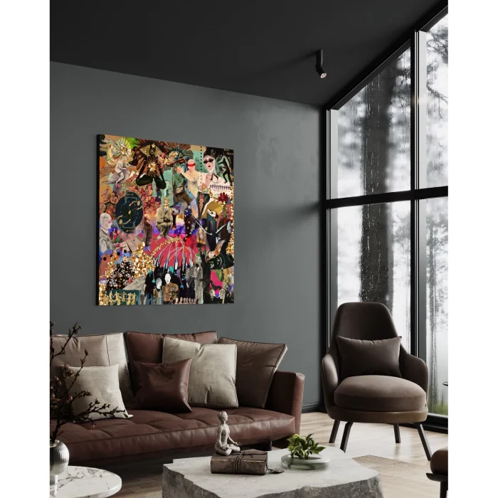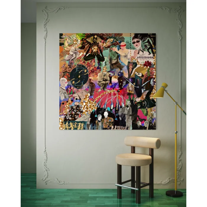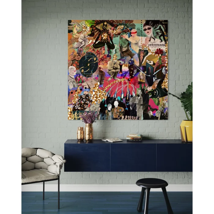 Eudoimoniart's "Parallels Universe" measures 70x70, 100x100 and 130x130 and tells an extraordinary story that stands out in the macro universe. This work of art opens the door to a world outside the known, inviting the viewer to a mysterious journey.