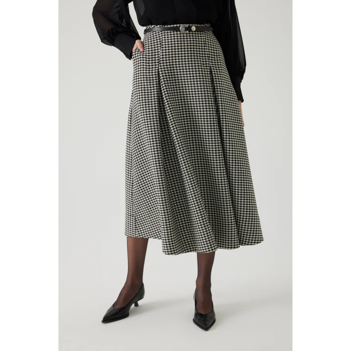 Product: A-line Gingham Patterned Belted Regular Midi Skirt