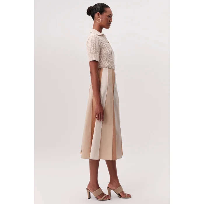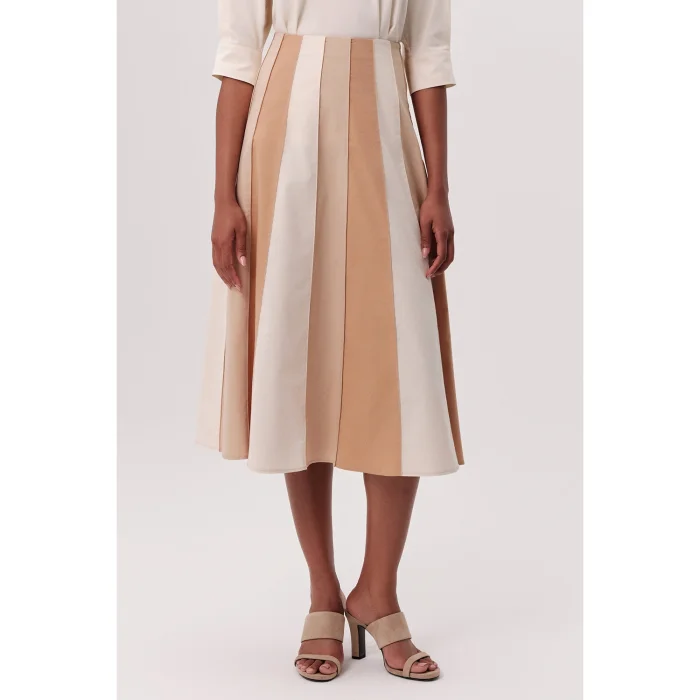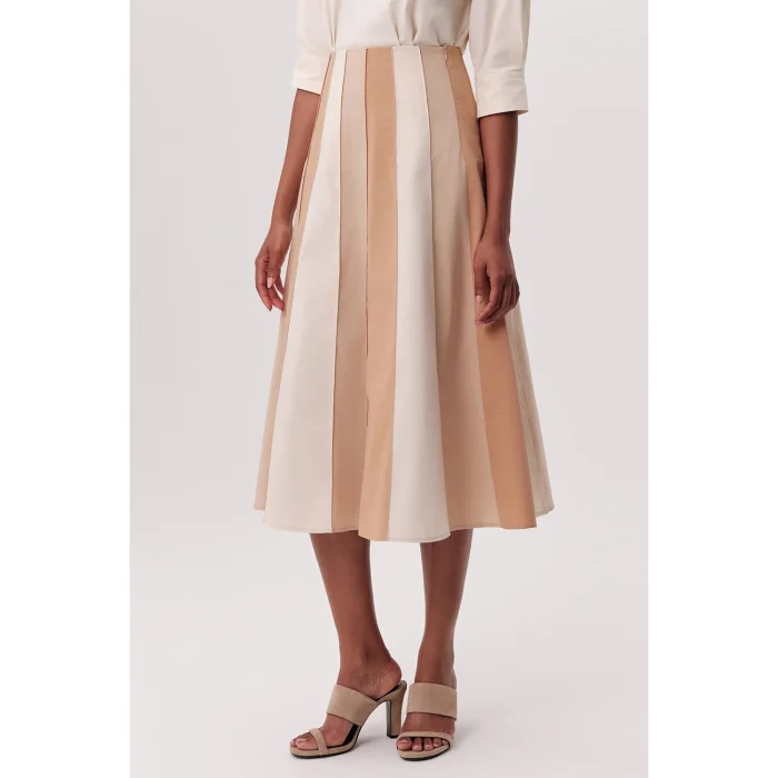 This elegant and versatile midi skirt is one of the timeless pieces to have in your wardrobe. The high waist cut highlights the body lines and offers a stylish look, while the flared model that widens towards the hem provides freedom of movement. Designed with harmonious transitions of beige, cream and light brown tones, this multi-colored skirt has a modern and aesthetic line. The hidden zipper detail offers easy use without disturbing the stylish drape of the skirt. The flared midi skirt with a high waist piece offers a comfortable and modern elegance all day long. Designed for women, this skirt can be easily preferred for daily use or used to create a striking style at a special event. You can easily combine it with a simple blouse or a stylish sweater, and you can create styles that will easily adapt to different environments by complementing it with different shoes. This classic fashion item matches many pieces in your closet, offering you many combination options. This skirt is a suitable option for women looking for elegance and practicality together. Pleated skirt details add volume and movement to the skirt, while midi length appeals to users of all age groups. Offering a wide range of uses from your daily elegance to your invitation style, this piece is a candidate to be one of the prominent pieces of your wardrobe. You can always show off a stylish and original style with this skirt that adapts to modern designs. Thanks to the lightweight structure and comfortable cut of its fabric, it offers comfort that will accompany you even on busy days. This skirt, which you can easily choose both in your office combinations and on weekend trips, will add a dynamic touch to your style.
