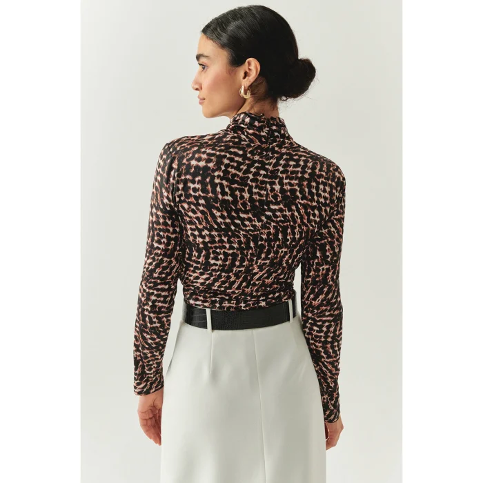 Standing out with its elegant turtleneck detail and energetic leopard print, this blouse fits the body with its slim fit cut and creates a feminine silhouette. While it offers comfort all day long thanks to its flexible texture, it can be stylishly complemented with both office-style pencil skirts and high heels with its modern design and with jeans and boots in daily combinations.