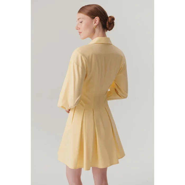 Pleated Mini Shirt Dress With Off-the-sleeve Detail