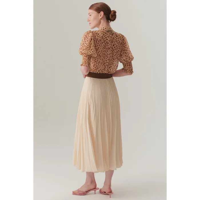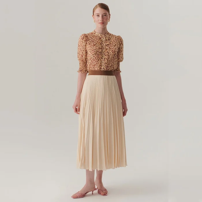 Product: Straight Cut Pleated Midi Skirt With Elastic Waist