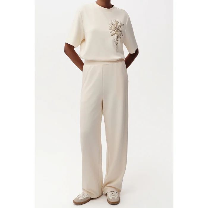 Designed with a comfortable cut and flowing form, the trousers offer a modern stance with their wide-leg silhouette. Thanks to its high waist structure, it adapts to the body and offers comfortable use. With its stretchy, flowing fabric, it is a suitable alternative to daily and urban elegance.