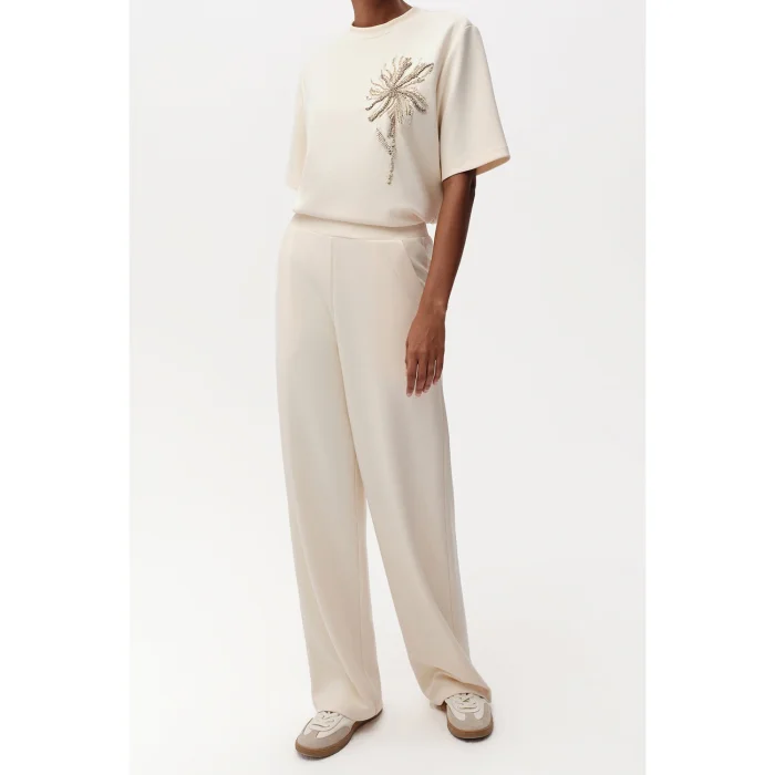 Designed with a comfortable cut and flowing form, the trousers offer a modern stance with their wide-leg silhouette. Thanks to its high waist structure, it adapts to the body and offers comfortable use. With its stretchy, flowing fabric, it is a suitable alternative to daily and urban elegance.