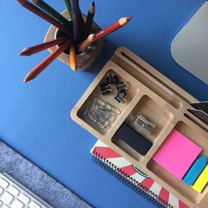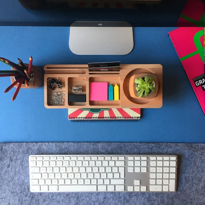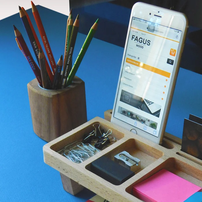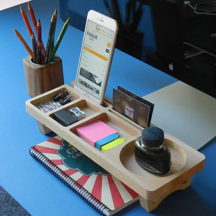 Desk organizer dimensions: 32x12x6 cm. Since the products are made of natural wood, there may be differences in color and texture. The price includes only wooden stand.
