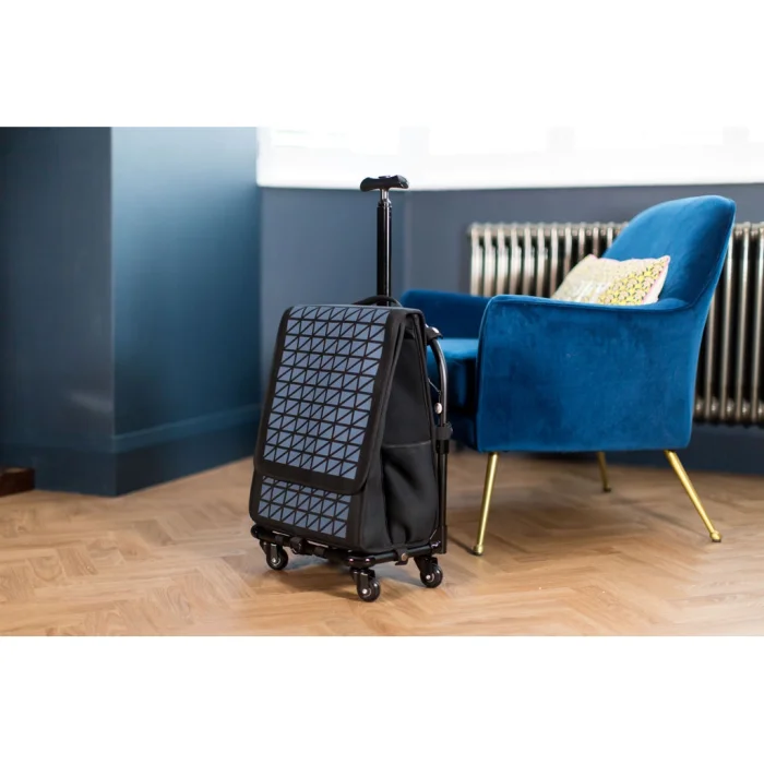 Unique top-opening access.  Cabin size and suitable as hand luggage.  Lockable laptop compartment.
