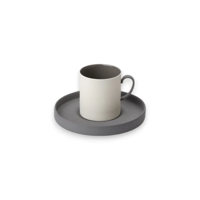 The inner surface of the cup and plate is shiny, the outer surface is matt                       Dishwasher Safe