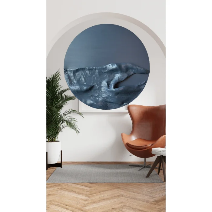 Measuring 120 cm / 47 inches in diameter, this striking piece features a harmonious blend of grey tones.