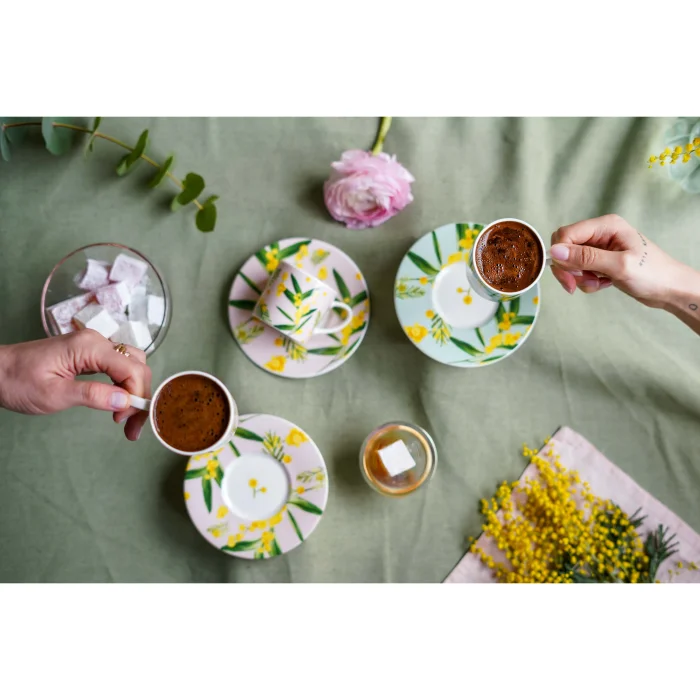 Fleur De Mimosa Collection Mix Espresso Cup Set Of 2/ Gift Box