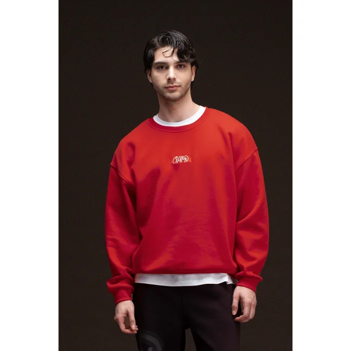 Model Dimensions; Height 184 cm, Bust 103 cm, Waist 78 cm, Hips 92 cm, Size : LProduct: Low Shoulder Back Printed Sweatshirt