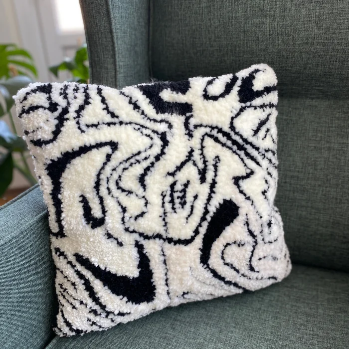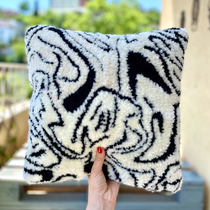 Flow Black Pillow is a unique design by Fille a Fille Design Studio, crafted from a combination of acrylic and cotton yarns to achieve a high quality and durable product. Measuring 40x40 cm, this pillow has been carefully designed to fit you snugly and provide an elegant look. Sold as a cover. Flow Pillow with an elegant pattern will complement any home décor style. In addition, thanks to its machine washability at 30 degrees, it is easy to clean and has a long service life. This pillow is the perfect complement to any comfortable living room, bedroom or study