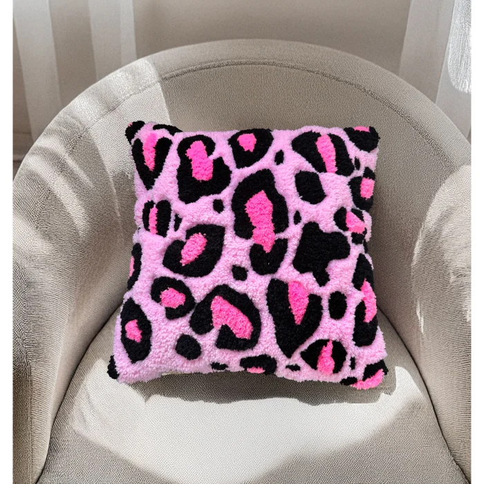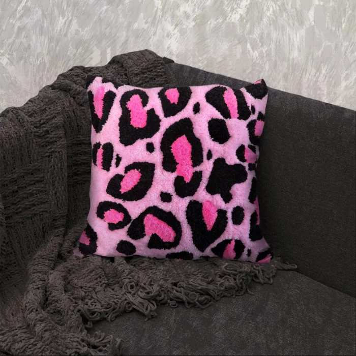 Our Leopard Throw Pillow is produced with tufting weaving technique. Acrylic and cotton yarn are used in the content of our product, which is designed entirely by us.