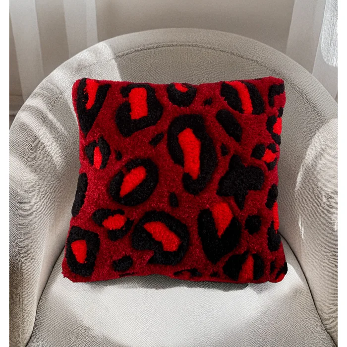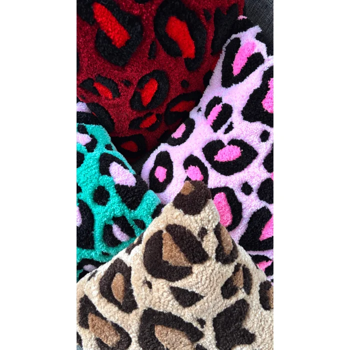 Our Leopard Throw Pillow is produced with tufting weaving technique. Acrylic and cotton yarn are used in the content of our product, which is designed entirely by us.