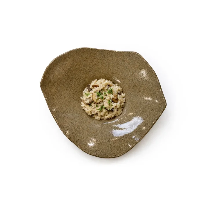 Mushroom-shaped ceramic cup. It is suitable for hot and cold service.