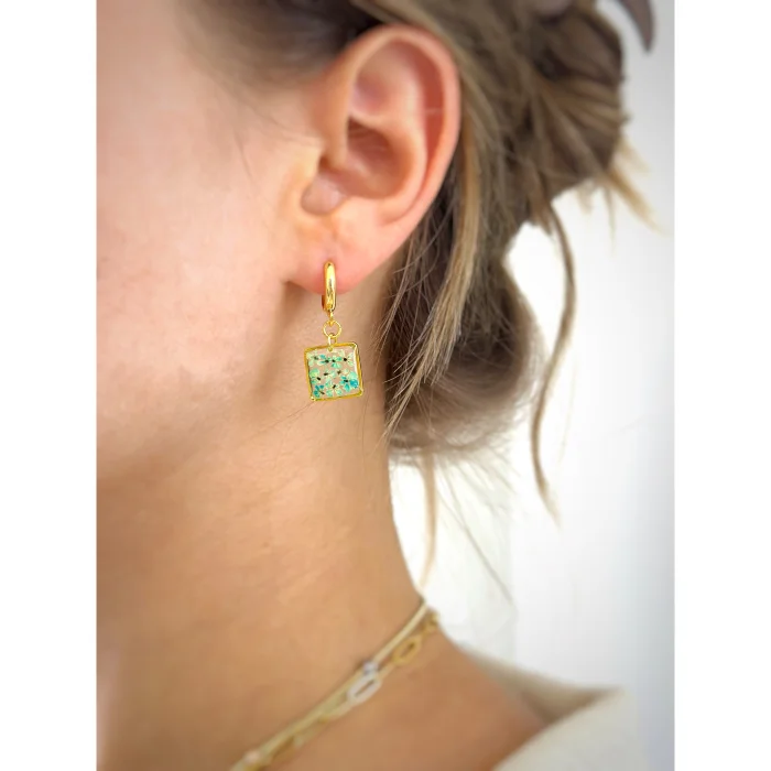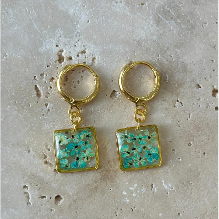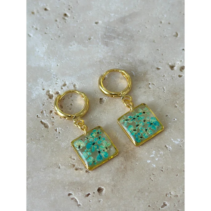 Product: Real Flower Teeny Weeny Square Drop Earring