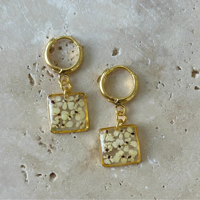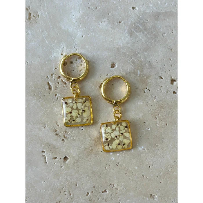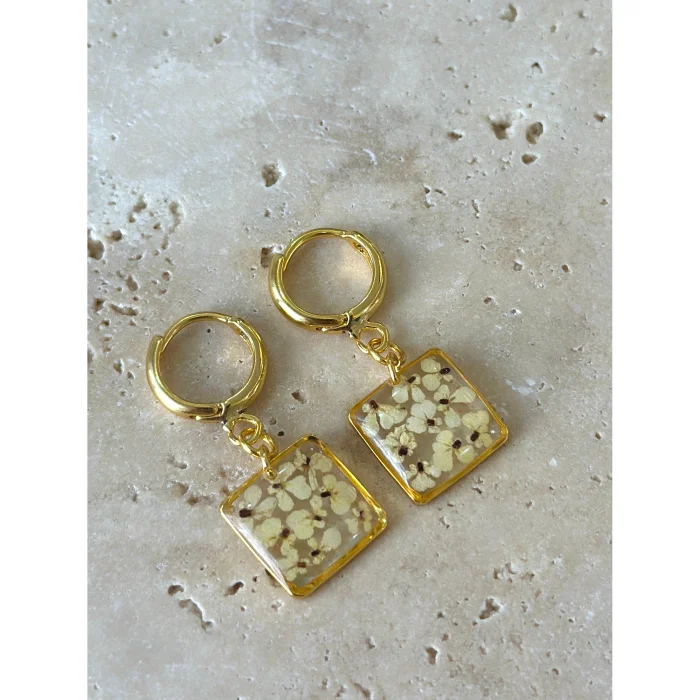 Product: Real Flower Teeny Weeny Square Drop Earring