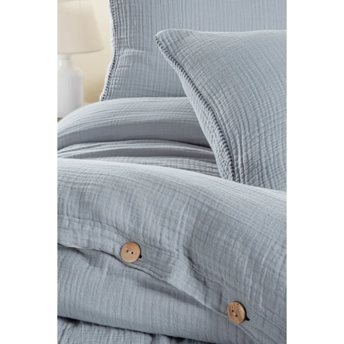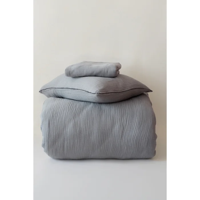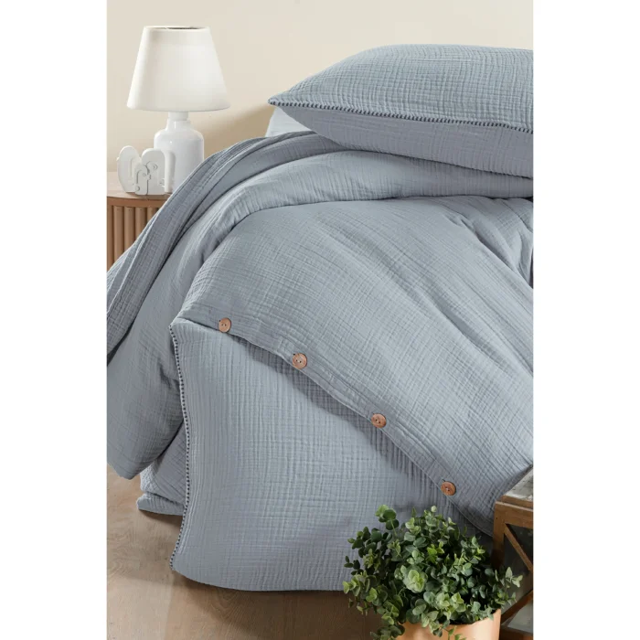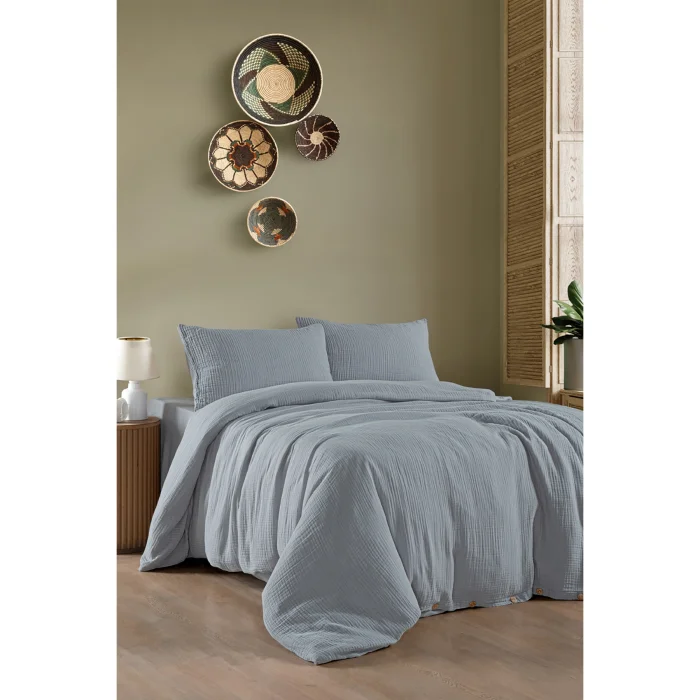 Duvet cover: Made of 100% cotton fabric that breathes; Sheet: 3-layer muslin fabric is used; Muslin fabric provides high air permeability, lightness and softness; Pillowcases: Made of muslin fabric with shepherd's stitch detail; Set contents and size details: Duvet cover: 200x220 cm; Sheet: 240x260 cm; Patterned pillowcase: 50x70 cm (2 pieces)