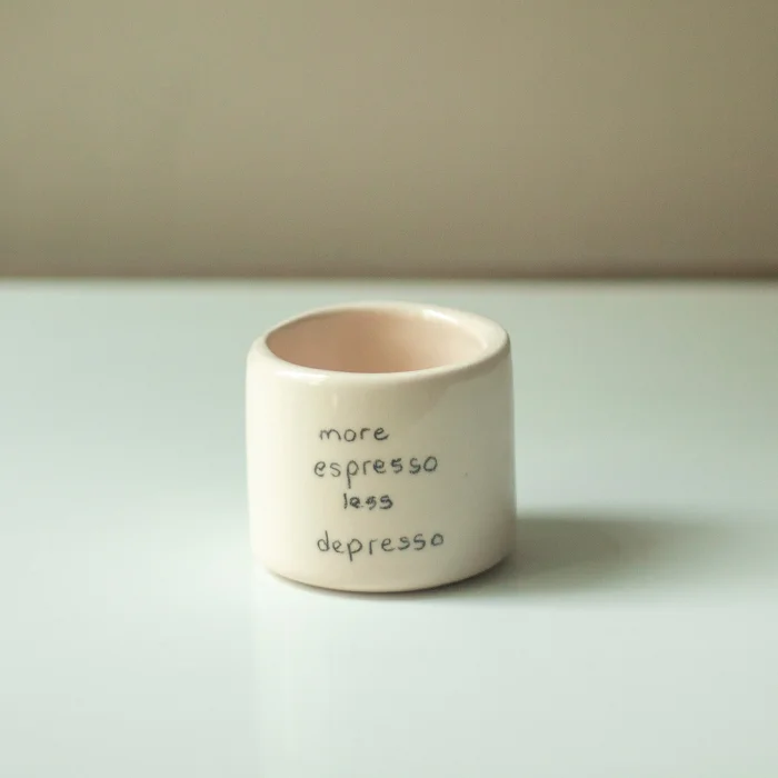 Handmade ceramic coffee cup made of high-quality ceramic material and finished with a food-safe glaze. It is handmade and the pattern drawing on it is done by hand.