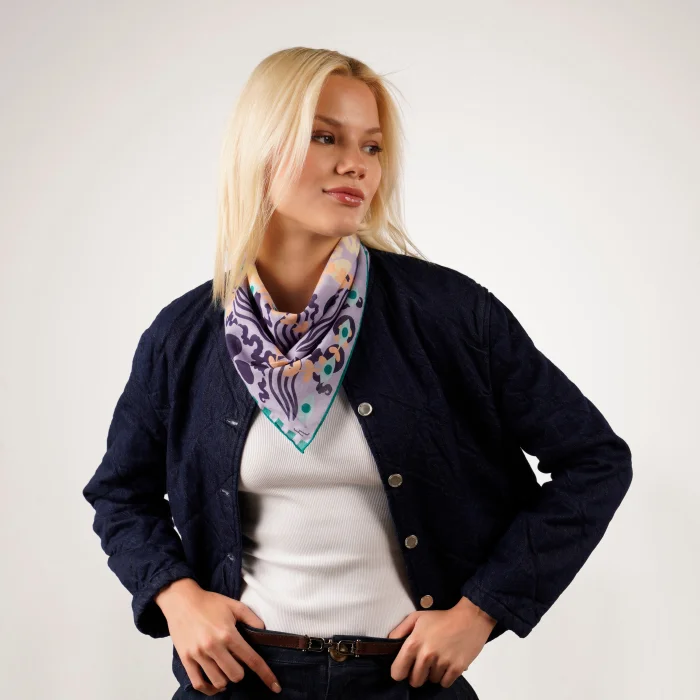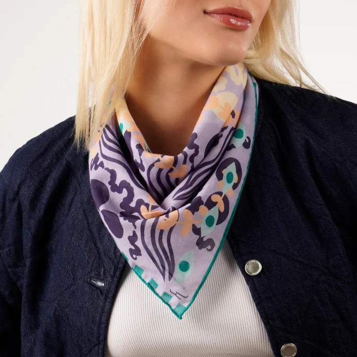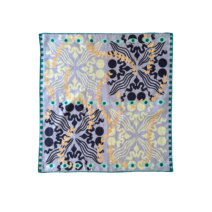 Cotton Bandana 100% Cotton Hand-rolled Our designs are hand-drawn and digitally printed. The edges of our scarves are hand-rolled. Each scarf is delivered in a special box, making it a perfect gift option.