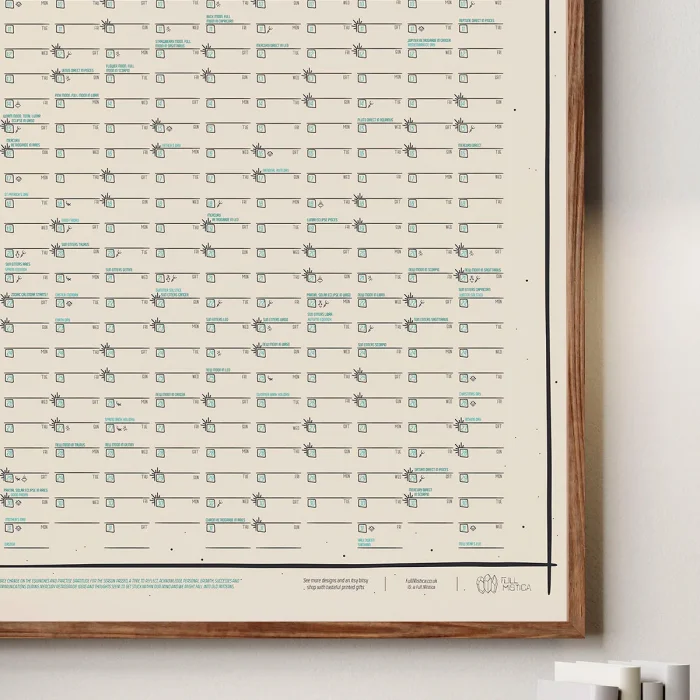 An amazing guide to plan your year around the stars. There are dates listed here to  inform you of the infamous Mercury Retrograde so you're not caught off guard. Lunar and Solar Eclipses, when the sun enters each zodiac sign, New and Full Moon dates, bank holidays and special days like National Rum Day and loads more.