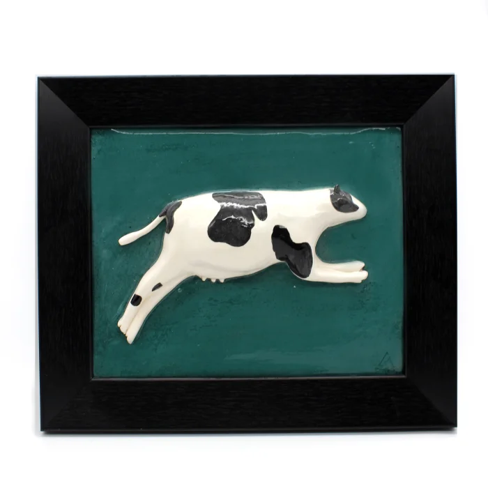 Product: Running Cow Handmade Framed Ceramic Wall Art