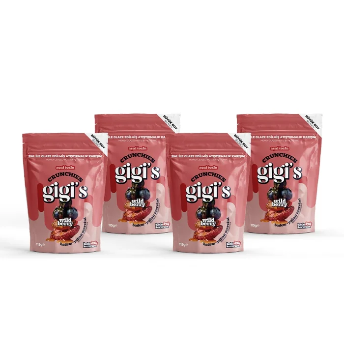 Almonds and blueberries are glazed with acai powder, dried strawberry pieces, honey, and sea salt. Introducing Gigi’s Crunchies Wild Berry.
