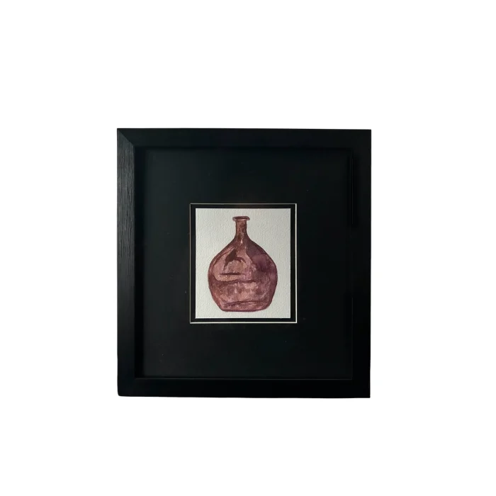 · Colour: watercolour work in burgundy tones, black passepartout and black frame with wood accents