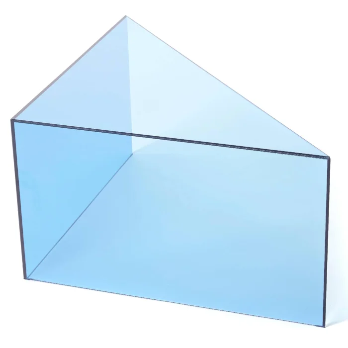The material of the product is glass, triangular in shape. There are two different heights. It is 70 x 70 x 99 cm. The height is 35 cm. Three colors are available in the collection. blue, green and bronze.