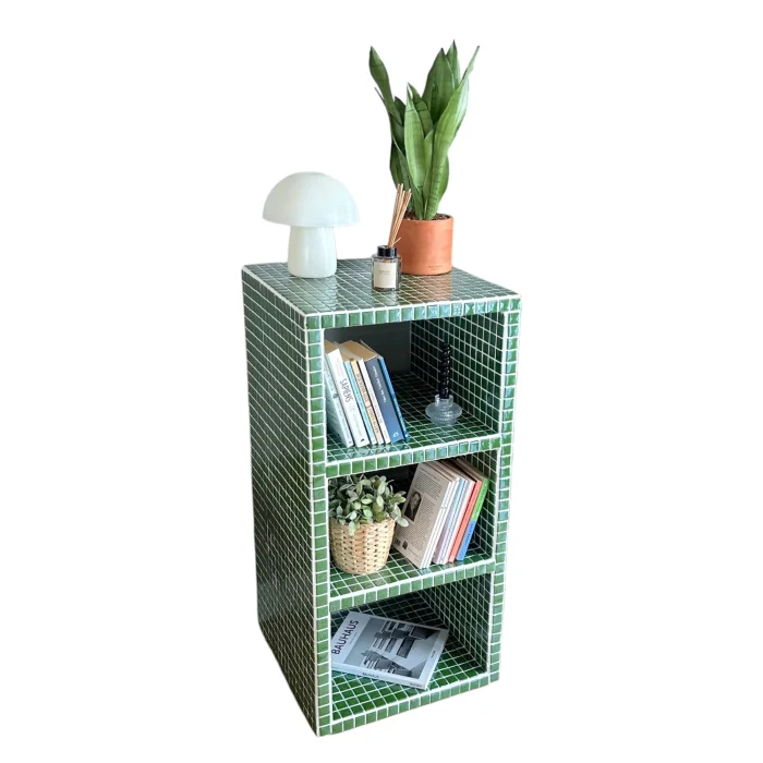 Size: 44X30X94h Weight: 40 kg Coating: Ceramic, glass mosaic or natural stone Internal skeleton: Wood Uses: Indoors only Delivery: 21 working days Made to order Since it is a handmade product, minor errors may appear