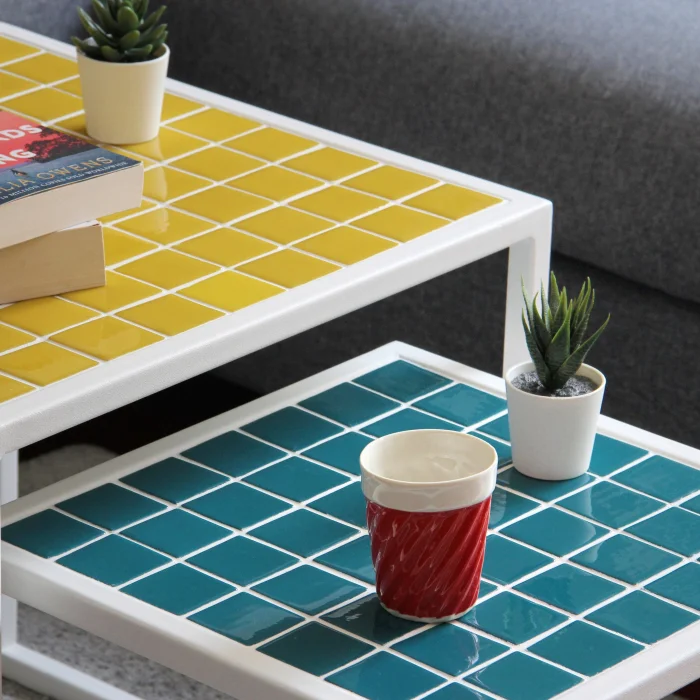 Measures: 41X41X41h 51X51X51h Pieces Weight: 7 kg Coating: Ceramic, glass mosaic or natural stone Frame: Metal Uses: Indoors and outdoors Delivery: 21 working days Made to order Since it is a handmade product, minor errors may appear