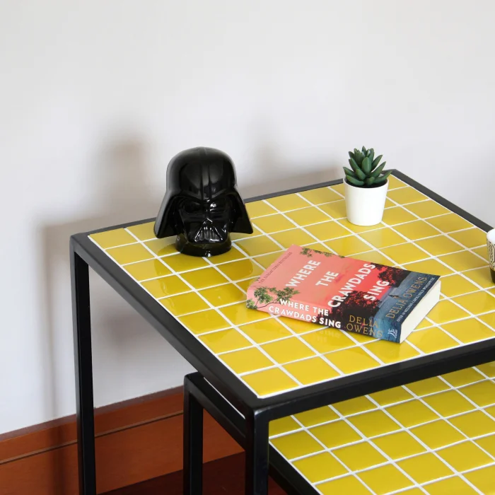 Measures: 41X41X41h 51X51X51h Pieces Weight: 7 kg Coating: Ceramic, glass mosaic or natural stone Frame: Metal Uses: Indoors and outdoors Delivery: 21 working days Made to order Since it is a handmade product, minor errors may appear