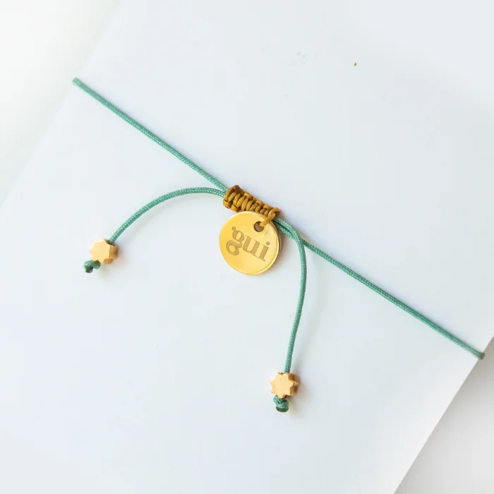 The bracelets are made with 18 carat gold plated brass beads. The wristband can be adjusted to different wristband thicknesses with the help of the lift knot.