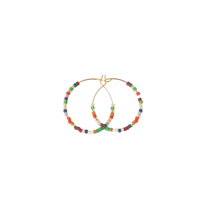 Earrings are produced by glass beads. Metal parts are 925 sterling silver plated with 18 karat gold.