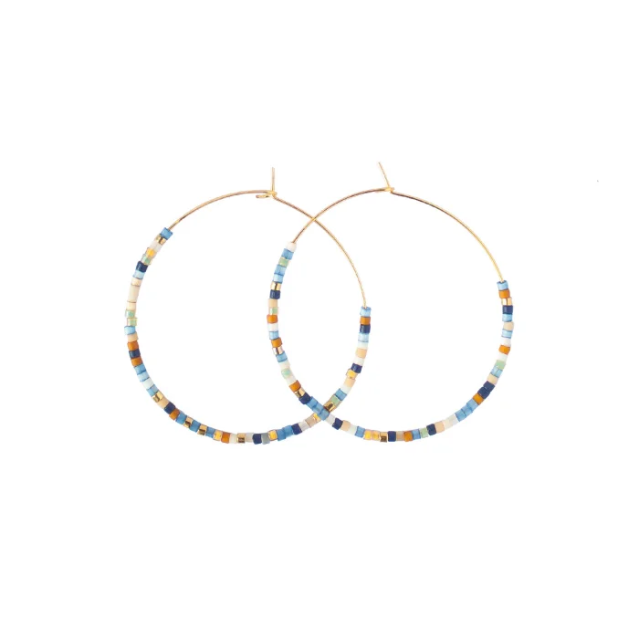 Earrings are produced by glass beads. Metal parts are 925 sterling silver plated with 18 karat gold.