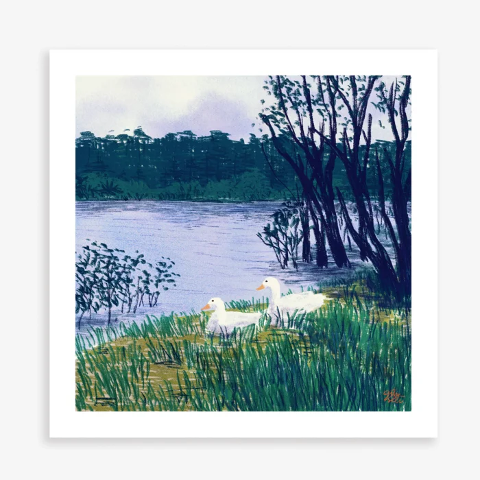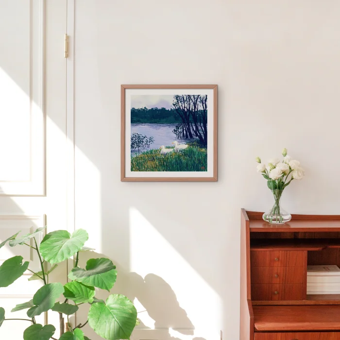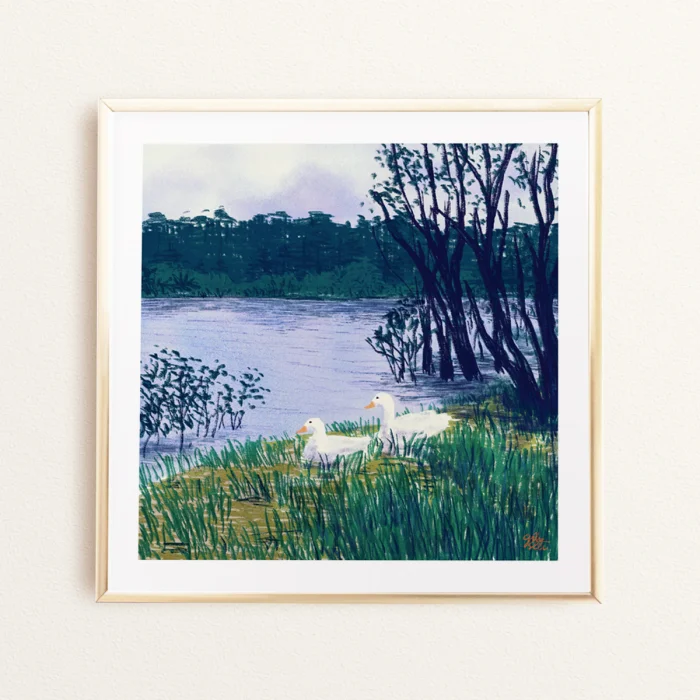 This illustration by Günseli Sepici will be printed on textured, 280gsm, professional paper using archival inks. We print the design with a 2 cm border for framing and ship it to your address without a frame in sturdy mailing tubes. Stay with love.