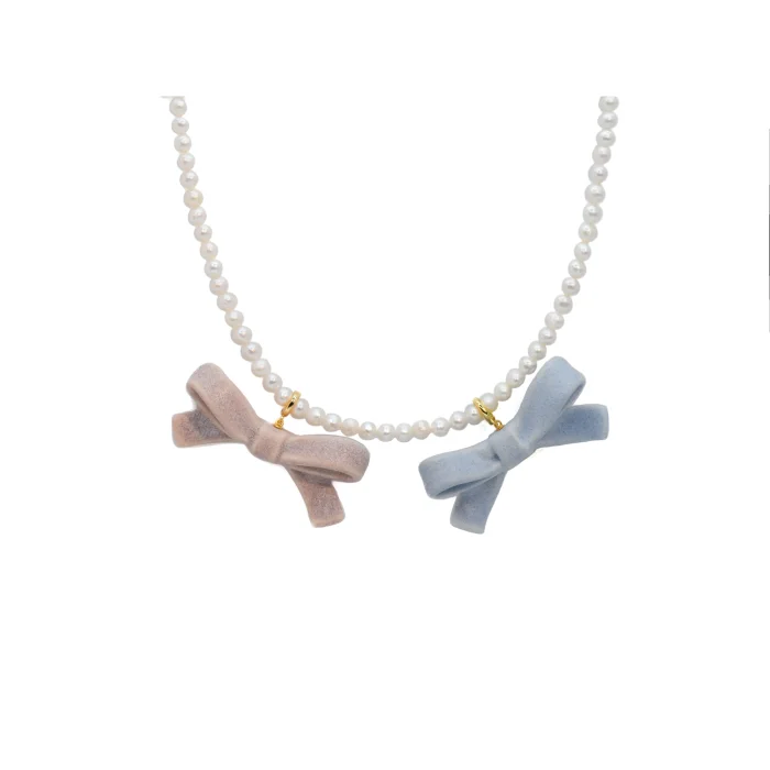 Product: Bowtie Maniac - Medium Ceramic Ribbon Charm Bowtie Freshwater Pearl Necklace