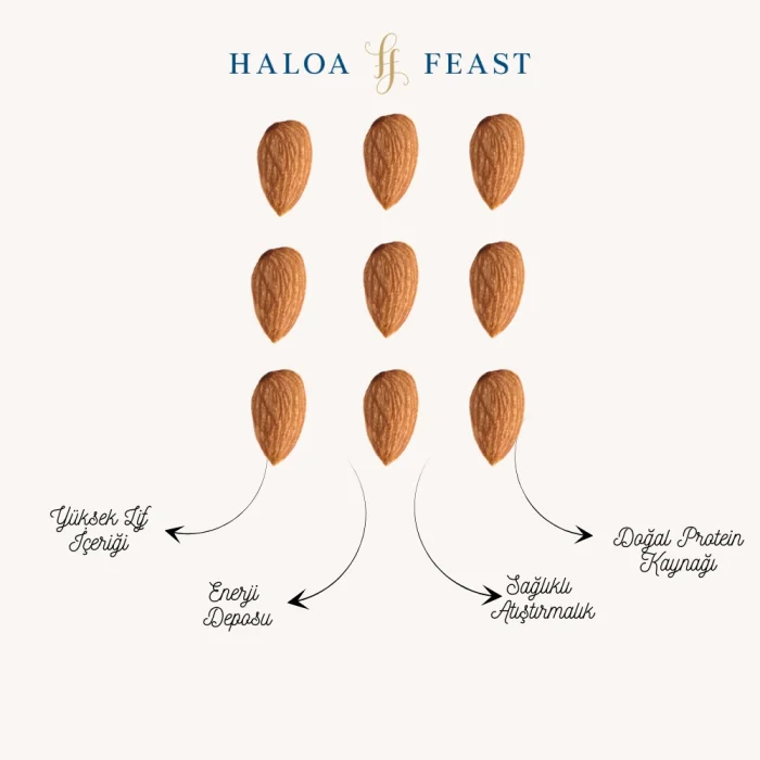 Raw almonds are an excellent snack served in their most nutritious form in their natural form. Packed with high protein, healthy fats, vitamin E, and minerals, raw almonds nourish your body, strengthen your immune system, and support heart health. In addition, raw almonds offer a wide range of uses from desserts to breakfasts with their natural flavor.