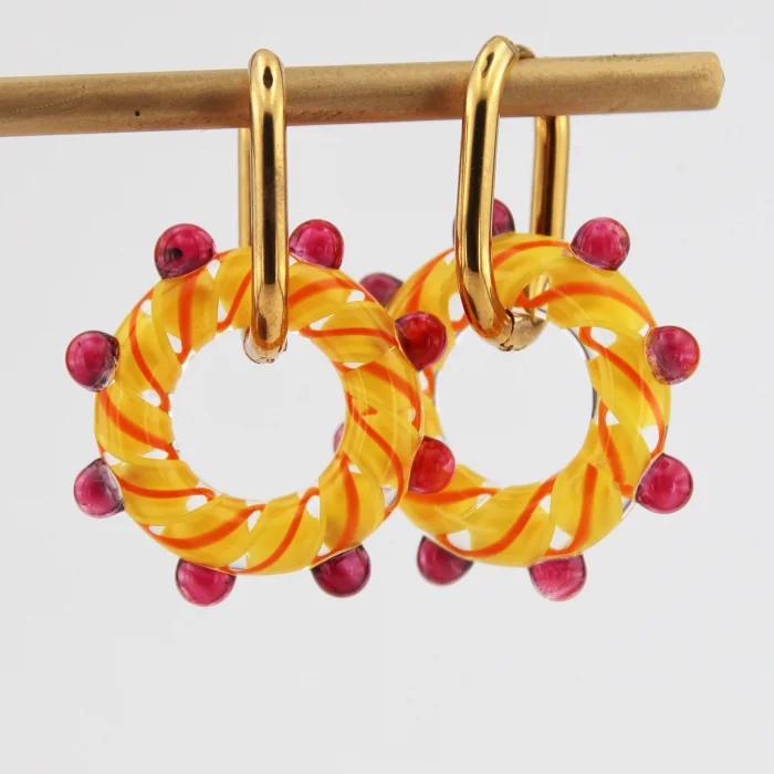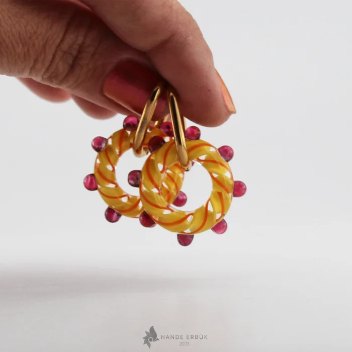 I create the designs that I apply in the art of glass shaping in open flame, which is one of the glass shaping techniques based on hand craftsmanship, by melting the glass at 1200 ° C in a tabletop torch, by making use of gravity and various hand tools, and by forming the glass in a fluid state.