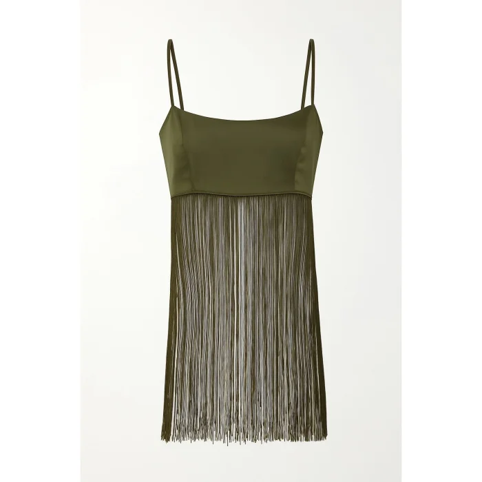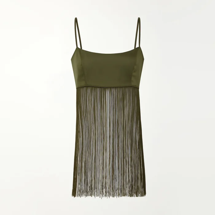 .100% Satin silk . Handcrafted tassel details . Adjustable straps . Relaxed and flowing silhouette
