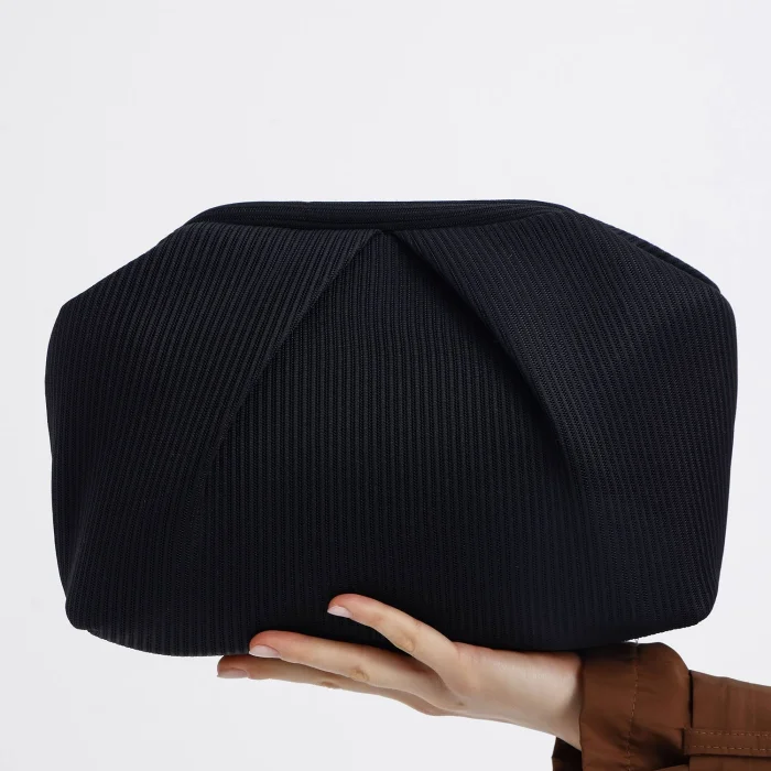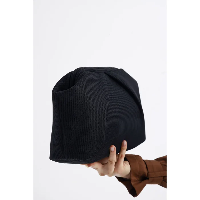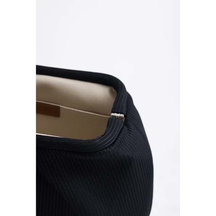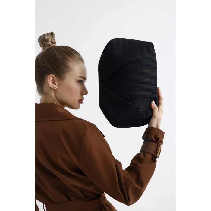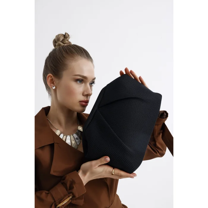Made of pleated fabric, this clutch stands out with its elegant texture. The interior is covered with a faux leather lining and has a convenient inner pocket. Measuring 28 x 19 x 10 cm, its compact design makes it an ideal choice for both casual and evening chic.