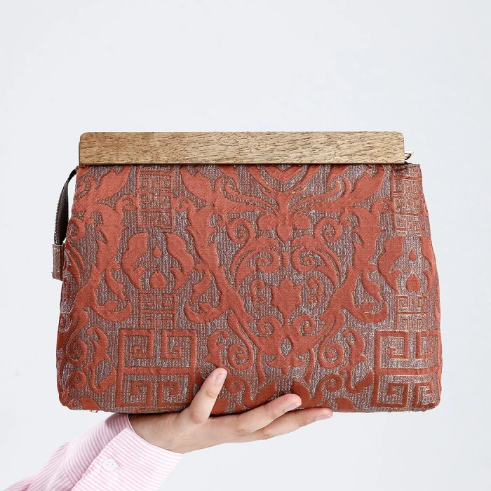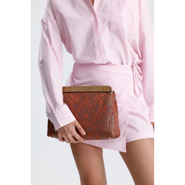 Wooden Detailed Authentic Pattern Hand Bag